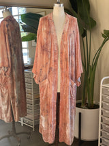 Reversible Velvet and Charmeuse Silk Duster, dyed with a proprietary blend of plants & flower petals. Can be worn with velvet or silk side out. Absolutely stunning in person!
