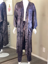 The Shadow Veil Silk Pant is dyed by hand in an alchemical fusion of violet, smoke, and bronze - a palette inspired by earth and the cosmos. Each piece is unique, revealing subtle marbling and tonal shifts that feel both ancient and modern.