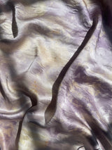 Soft as a sigh and hued like moonlight on moss, Lilac Meadow is a one of a kind silk pillowcase dyed in cool lilac greys, gentle sage, and pale yellow gold. The pattern evokes dew on petals, twilight fog, and sacred forest light; an invitation to drift into dreams wrapped in nature. Hand-dyed with botanicals for beauty that soothes both skin and spirit.