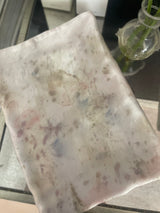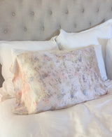 A delicate tapestry of nature’s poetry, this hand-dyed silk pillowcase is a love letter to petals past. Hints of pink, lavender, and gold emerge like the first light of dawn filtering through a garden in bloom. Each botanical imprint is a whisper of nature’s alchemy, an ephemeral dance of color and texture. Resting upon this silk is like laying among pressed flowers, wrapped in a veil of softness and serenity.