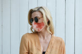 This hand dyed face mask features a sloped front shape, perfect for wearing with eyewear. It is breathable, hypoallergenic, a temperature regulator, and doesn't collect environmental allergens. Reversible with one side solid and the other tie dye. Good for the body and the planet, it is the mask you've been waiting for.